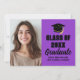 Eine personalisierte Ankündigung des Abschlusses in lila und schwarz für eine High School, Uni oder Universität aus der Klasse von 2025. Passen Sie mit Ihrem Schulnamen und schließ-Klasse unter der schönen Kalligrafie für eine elegante personalisierte Graduiertenfotokarte mit Ihrem Senior-Portrait-Foto an.