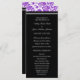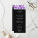Hochzeitsprogramm in elegantem, lila, schwarz-weiß Vintagem Damastmuster. Passen Sie diese Reihenfolge der Zeremonie-Karten mit Ihrem eigenen Text an oder kontaktieren Sie uns für eine benutzerdefinierte Karte, um Ihren Text anzupassen.