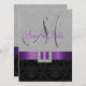 Elegante Eleganz vermittelt diese wunderschöne Hochzeit Save the Date Card Design. Ein grau-schwarz auf schwarzem Damast-Muster dient als Hintergrund für einen Foto-Effekt des Metallic Silver Initial M und einer lila Satin-Band und Karo-Brosche ALL PRINTED auf FLAT CARD Save the Date Wedding Announcements. Ein perfekter Weg, um Ihre kommende Hochzeit bekannt zu geben. Zeitgenössisches, aber klassisches Damast-Muster mit einem Design, das es Ihnen ermöglicht, die Vorderseite mit Ihren Namen zu personalisieren, und die Rückseite ist frei, Ihren individuellen Save the Date Text hinzuzufügen. Hochzeit Einladung ist Set für Monogramm Initial "M". Für andere Briefe, unterschiedliche Farbfarben und Hintergrund wenden Sie sich bitte an den Designer unter luxuryweddinginvitations@gmail.com. Entwurf des Layouts von Elke Clarke©. lizenzierte Grafiken. Wählen Sie auch aus einer Vielzahl von Schriftart und schönen Papieren, um Ihre Hochzeitseinladungen PERFECT!