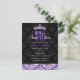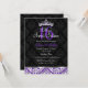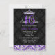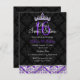 Lila & Schwarz Sweet 16 Geburtstag Einladung. Hübsches silber & lila Diamanttiara & schimmerndes silberfarbenes Damaskus-Design. Bitte beachten Sie: Alle flachen Bilder, Sie haben keine echten Juwelen!