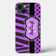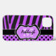 Personalisierte moderne lila, schwarze und weiße Zebrastreifen mit Polka-Dots-Muster Case-Mate iPad Air Gehäuse. Passen Sie es an, um Ihren Namen, Ihre Initialen, Ihr Logo, Ihr Monogramm oder einen anderen Text zu haben.