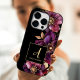 Elegante Lila Golden Floral Black Monogram Phone Gehäuse. 3 blühende Blume in tiefroten, lila und goldenen Details und Blätter gruppieren sich in einem weichen Bogen auf der rechten Seite dieses Handy Gehäuse. Ein schwarz-goldener Rahmen mit Ihrem Monogramm-Buchstaben und Ihrem für Sie individuell anpassbaren vollständigen Namen wird in der Mitte auf dem unteren Teil der Oberfläche platziert. Dieses Gehäuse ist für viele Größen und Modelle erhältlich. Suchen Sie unter "Gerätetyp" nach Ihrem Gerät. Sehen Sie auch die passenden Produkte zum gleichen Design-Thema wie Visitenkarten und Planer.