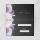 Diese elegante, moderne Hochzeitstisch-Platzkarte mit Sitzgelegenheiten ist mit einem lila und silbernen Glitzer-Blumendesign an einem Rand auf einem schwarzen Hintergrund ausgestattet. Die Vorderseite der Karte bietet Platz für den Namen und die Tischnummer des Gastes in Form von silbergrauen Rechtecken. Das Wort "Tabelle" erscheint in einem silbergrauen Handschriftenskript mit Swashes vor und nach dem Gebrauch. Passen Sie die Rückseite der Karte mit den Namen der Braut und Bräutigam in silbergrauen Handschrift und das Hochzeitdatum unten in Sans Serif Schriftart.