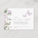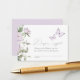 Ermuntern Sie Ihre Babyduschgäste, mit dieser Einladungskarte für das Windeln Raffle, die mit einem Schmetterling in Aquarelltönen, violetten Blumen und Grünpflanzen ausgestattet ist, eine Packung Windeln für Ihre Kleine mitzubringen.