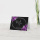 Diese elegante, moderne Hochzeitskarte mit einem silbernen geometrischen Rahmen, der mit violetten Blumen und silbernen Imitaten Glitzer auf schwarzem Hintergrund dekoriert ist. Die Worte "Danke" erscheinen in skurrilen, silbergrauen Handschrift, die Namen des Paares unten kursiv.