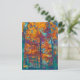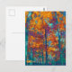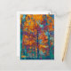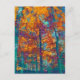 Ein gemaltes Bild von Bäumen im Herbst, in kühnen Gelb-, lila-, Orange- und aquamarin-Farbtönen.