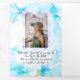 Präsentieren Sie Ihr süßes 16 Foto, das sich über eine wunderschöne blumengeschmückte 12x18 verteilt. Fügen Sie Babybilder mit Ihrer personalisierten, süßen 16. Nachricht hinzu. Ihre Fotos sind umgeben von skurrilen Libellen. Schöne Aquarellorchideen hinter Text und Foto sind skalierbar. Blau, Aquamarine und lila Wasserfarbe 16 . Geburtstag Geburtstagsfeier Einladung ist vielseitig für Quinceaneras und Fledermaus Mitzvahs. Das süße sechzehnte Foto-Shooting-Stil-Einladungen sind perfekt für jedes Meilenstein-Alter.