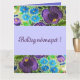 Lila-blau Stickerei-Look - bedruckte große Grußkarte. Kalocsai Stil Vintage Blumenkunst von Dorfbewohnern aus Ungarn. fotografiert von Alma Wad . Es kommt mit dem Text " Boldog Nevnapot !", was bedeutet "Happy Name Day ".
