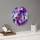 Eine Blumenuhr aus lila Stiefmütterchen.