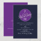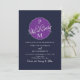 Elegante, moderne, minimalistische, lila und marineblaue Hochzeitseinladung mit einzigartigem Monogramm und QR Code hinten.