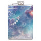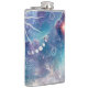 Gas- und Staubpartikel drehen sich im Weltraum herum und bilden so wunderschön gefärbte Wolken, die den Raum zwischen den Sternen einnehmen. Schauspiel als Kinderzimmer für neue Sterne, dieses Wolkennebel-Design ist hellblau und lila. Oben wurde ein weißes astrologisches Muster mit Planeten und Sternen hinzugefügt.