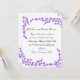 Lila ist die Farbe der Leidenschaft und des Königtums. Ein schönes Design mit winzigen lila Blüten, die von feinen Ästen beherrscht werden. Passen Sie mit Hochzeitsinformationen auf Wunsch an.