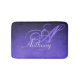 Moderne abstrakte Badematte. Lila blau, schwarz. Modernes, schlichtes und elegantes Badezimmer Zubehör. Sie können dieses Design für sich selbst oder für einen geliebten Menschen personalisieren, indem Sie Ihren Namen ändern. Eine Textvorlage wird zur Personalisierung mit Ihrem Monogramm oder Text hinzugefügt. Sie können auch das Beispielmonogramm löschen, wenn Sie die Badmatte ohne Text bestellen möchten.