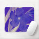 Lila / Blue Digital Art Blume auf einem Mousepad mit einer Leinwand texturiert aussehen.