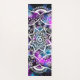 Ein schöner Yoga- oder Sportmatte mit handgezogenen Boho mandala Blume Designs in Weiß über einen lila und blauen galaxischen inspiriert Hintergrund.