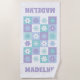 Dieses personalisierte Badetuch ist im Retro-Stil gehalten und mit einem Schachbrettmuster in Blau und lila gehalten. Es eignet sich ideal für verschiedene Aktivitäten im Freien, ob Sie am Strand entspannen, ein Party am Pool genießen oder ein Picknick im Park genießen möchten. Diese Handtücher dienen nicht nur dem praktischen Zweck, sondern sind auch ein herzliches Geschenk, das man dem Namen des Empfängers anpassen kann. Leckerei jemanden, der ein Geschenk, das Funktionalität mit einer persönlichen Touch verbindet!