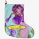 Lila Blue Iris Irises Blumenweihnachtsfest Strumpf, mit einem vollständig anpassbaren Namen. Aus meinem eigenen Malereidesign.