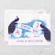 Vintag Lila, Aquamarine Blue Peacock Wedding Danke Postcard. Dieses wunderschöne Hochzeitsdanken-Kartendesign ist perfekt für eine Vintage Hochzeit mit der Fähigkeit, mit Ihren Monogramm-Initialen auf der Vorderseite und Ihr Dank an Sie Nachricht und Namen auf der Rückseite personalisieren. Sein einzigartiges Design mit Zwei wunderschöne Pfauen auf Vintagem Banner und Text in einem lila Schriftart alles auf einem weißen Hintergrund, schaffen eine einzigartige, stilvolle Hochzeitsgarantie danke Karte, um die Einladung Paket in den Laden. Elke Clarke© Hilfe benötigen oder eine andere Farbkombination wünschen, wenden Sie sich bitte an luxuryweddinginvitations@gmail.com