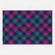 Ein festliches lila und blaues Büffel kariertes Set von Urlaubspapier.