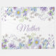 Große Fleecedecke mit hübschen lila und blauen Blume und Grünpflanzen. "Mutter" wird in einem eleganten Script-Schriftart in der Mitte geschrieben. Personalisieren Sie mit jedem Text, den Sie auswählen.