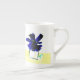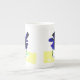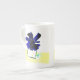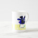 Lila Blume auf gelber Tabelle - entbeinen Sie China-Tasse. Basiert auf ursprünglichem Aquarell. Copyright Ruth Spector.