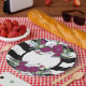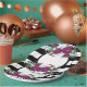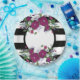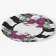 Lila Blume aus schwarzem und weißem Streifen Pappteller