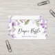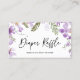 Diese elegante Diaper Raffle Card aus unserer Lilac Lavendel Floral Kollektion bietet niedliche Blume in staubigen Lillavendertönen mit zarter Vegetation, gepaart mit einem klassischen, modernen Script-Schriftart. Ideal für Frühling, Sommer und Herbst Party!