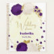 Romantische königliche lila-weiße Blume mit goldenen Blätter botanischen Hochzeitsplaner Die Einzelheiten des Glitzer werden simuliert.