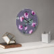 Lila Blumen: Aquarellfarbenes, nahtloses Muster. Große Wanduhr