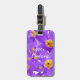 Schöne, blumengeschmückte Gepäckanhänger mit Ihrem Namen. Einfach anzupassen. Fantastisch lila Blumen Muster.