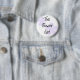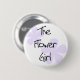 Hübsche lila Blumen und schwarzer Text entwerfen die Blumen-Mädchen-T - Shirts, die mousepads, die Tassen, die Knöpfe, die Taschentaschen und mehr, die Sie mit einem Namen oder anderem Text besonders anfertigen können. Wir haben den zusammenpassenden Entwurf für alle Mitglieder des Hochzeits-Party!