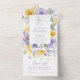 Lila Blumen, gelbe Blumen, Boho, Babydusche All In One Einladung