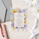 Mit dieser charmanten Geburtstagseinladung laden Sie Freunde und Familie in Stil und Set ein. Das Design zeichnet sich durch lila und gelbe Aquarellfarben und Grünpflanzen aus.