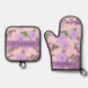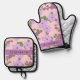 Lila Blumen, Muster von Blume, Ihr Name Ofenhandschuh & Topflappen-Set