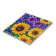 Lila Blumen und gelbe Sonnenblumen Fliese