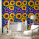 Lila Blumen und gelbe Sonnenblumen Tapete