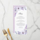 Lila Blumen. Violett-Hochzeitsessen Menükarte