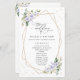 Fügen Sie Ihrer Hochzeitsfeier eine persönliche Touch mit diesen stilvollen und unvergesslichen Party hinzu! Das Design umfasst lila-weiße Aquarellfarben-Blume, Grünpflanzen, Goldkonfetti und Goldrahmen auf weißem Hintergrund.