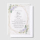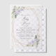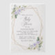 Lade Freunde und Familie stilvoll ein und bestimme den Ton für deinen besonderen Tag mit dieser charmanten Babyparty-Einladung. Das Design zeigt lila und weiße Aquarellblumen, Grün, goldenes Konfetti und einen goldenen Rahmen.