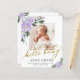 Lila Blumenfarbe, Geburtsankündigung von Fotos und Dankeschön Karte. Einfach mit Fotos und Details für Ihr Baby personalisieren. Bitte kontaktieren Sie mich per Chat, wenn Sie Fragen zum Kunstwerk haben oder eine Anpassung benötigen. BITTE BEACHTEN SIE: Für Unterstützung bei Bestellungen, Versand, Produktinformationen usw. wenden Sie sich direkt an den Zazzle Kundenservice https://help.zazzle.com/hc/en-us/articles/221463567-How-Do-I-Contact-Zazzle-Customer-Support-.