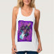 Arbeiten Sie stilvoll mit unserem Hübschen White Racerback Tank Top mit unserem lebendigen, Lila, Abstrakten Blumenblass Gitarrendesign
