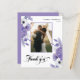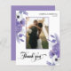 Lila florale Hochzeitswohnung Dankeschön Card Mit unserer preiswerten Wedding Dankeschön Card Ihr Dankeschön für Eleganz und Charme ausdrücken. Freuen Sie sich auf Ihr hochzeitsgeschenktes Foto, lila Bouquets und einen wunderschön gestalteten kalligraphischen Schriftart. Mit Sorgfalt erstellt, bietet diese Dankeschön-Karte einen herzlichen Weg, Ihre Lieben zu schätzen. Die Aufnahme Ihres Hochzeitsstils bringt eine persönliche Touch mit sich, die es Ihnen ermöglicht, eine wertvolle Erinnerung an Ihren besonderen Tag zu teilen. Der Kalligraphie-Schriftart fügt Ihrer Dankesbotschaft eine Touch von Raffinesse und Verfeinerung hinzu. Die zarten Kurven und die anmutigen Linien vermitteln Wärme und Aufrichtigkeit, sodass jede Karte ein wahrhaft herzliches Gefühl hat. Falls Sie Hilfe für die Anpassung benötigen, können Sie sich jederzeit an den Händler wenden