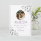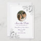 Verkünden Sie Ihre Hochzeit stilvoll mit dieser eleganten lila floralen "Save the Date"-Karte mit Foto, moderner Skript-Typografie und zarten Blumen in Linienart. Das saubere Layout hebt Ihr Bild schön hervor, während der lila Rahmen und die floralen Ecken eine romantische, zeitlose Note hinzufügen.