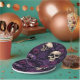 Eine wunderschöne lila Papiertafel aus Halloween-Party. Dieses moody-lila und schwarze Design bietet Blume und Skulls. Eine tolle Möglichkeit, Ihrem Halloween einen stylischen, sprichwörtlichen Hauch von Spott hinzuzufügen.