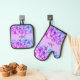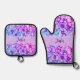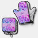 Lila Blumengrenzen - Name hinzufügen Ofenhandschuh & Topflappen-Set