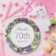 Schöne lila Aquarellblüte mit grünen Blätter und Weinbergen 70. Geburtstag (oder jedes Alter) Papier Party Teller mit einem Namen und Alter angepasst.