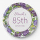 Schöne lila Aquarellblüte mit grünen Blätter und Weinbergen 85. Geburtstag (oder jedes Alter) Papier Party Teller mit einem Namen und Alter angepasst.