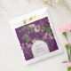 Eine wunderschöne Verschmelzung lila rustikaler Aquarellfarben-Blume mit dem modernen schicken goldenen eleganten Bogen. Ein einzigartiges Design, das lila und goldene Farbtöne verwendet. Ein elegantes, lila Vintages Blumendesign mit üppiger Vegetation. Eine florale und botanische Gastgeschenk Hochzeit Tasche Design mit modernen Elementen. Auch die passenden Hochzeitseinladungen und andere Schreibwaren sind verfügbar.