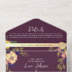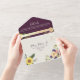 Feiern Sie Ihre Liebe mit lebhaften Farben und rustikaler Eleganz mit unserer boho botanischen lila Hochzeitseinladung. Dieses atemberaubende Design zeigt kühne Aquarellfarben-Blume, fröhliche Sonnenblumen und elegante handgeschriebene Schriften, die eine perfekte Mischung aus Wärme und Eleganz schaffen. Die Kombination aus rustikalem Charme und modernem Stil prägt das Wesen Ihrer Liebe. Personalisieren Sie diese Einladung mit einem herzlichen Foto des glücklichen Ehepaares, zusammen mit Ihren Hochzeitsdetails und UAWG-Informationen, die es zu einem wahrhaft einzigartigen Sake machen. Ideal für rustikale, boho- oder botanische Hochzeiten, bringt diese Einladung eine Touch von Romantik und fröhlicher Feier zu Ihrem besonderen Tag. Wichtig: Diese Öko-freundliche All-in-One-Einladung erfordert einen separaten Briefumschlag.