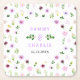 Dieser wunderschöne und elegante Untersetzer ist mit violetten Aquarellblumen und Blättern ausgestattet. Der Text kombiniert handgeschriebene Skript- und Serif-Schriftart für ein stilvolles und modernes Aussehen. Das ist perfekt für eine frühlingshafte Hochzeit.
